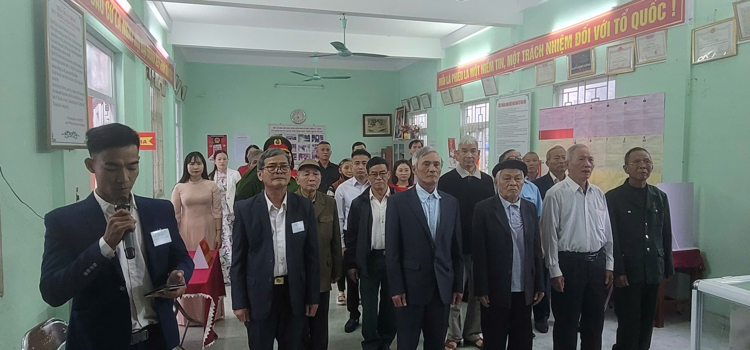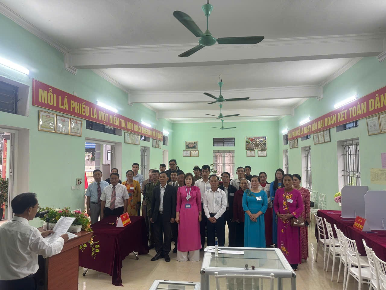 Đúng 6 giờ 30 phút, lễ khai mạc được tiến hành theo đúng nghi thức, thể hiện tinh thần dân chủ, kỷ cương và trách nhiệm của cử tri trong thực hiện quyền làm chủ của Nhân dân.