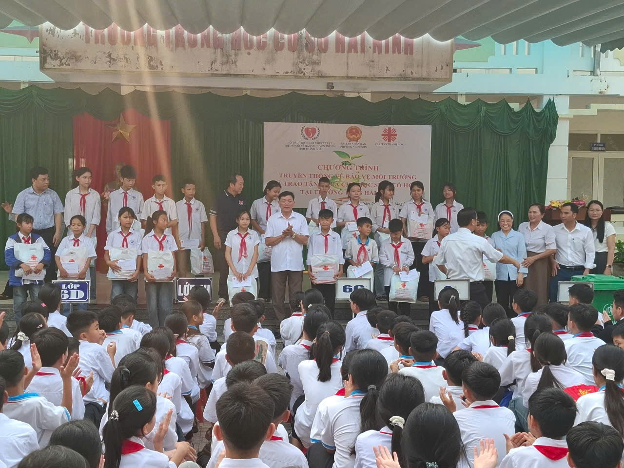 40 học sinh tại trường THCS Hải Ninh và THCS Hải Châu có hoàn cảnh khó khăm nhận quà khuyến học do Caritas Thanh Hóa trao tặng