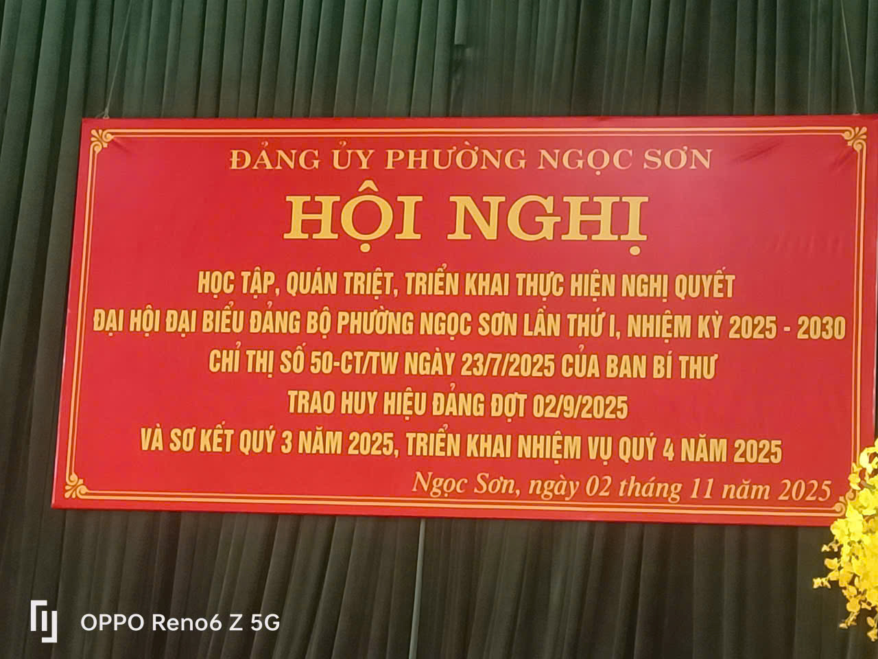 Sáng ngày 2/12, Đảng bộ phường Ngọc Sơn đã tổ chức Hội nghị học tập, quán triệt và triển khai Nghị quyết Đại hội đại biểu Đảng bộ phường lần thứ I, nhiệm kỳ 2025-2030; trao huy hiệu Đảng đợt 2/9/2025 và sơ kết tình hình thực hiện nhiệm vụ quý III năm 2025, triển khai nhiệm vụ quý IV năm 2025.